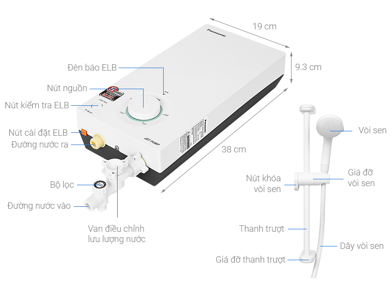 Đặc điểm nổi bật ● Máy nước nóng Panasonic thiết kế sang trọng, phù hợp với mọi không gian phòng tắm ● Bơm trợ lực giúp tăng áp lực nước đầu ra, phù hợp dùng cho cả