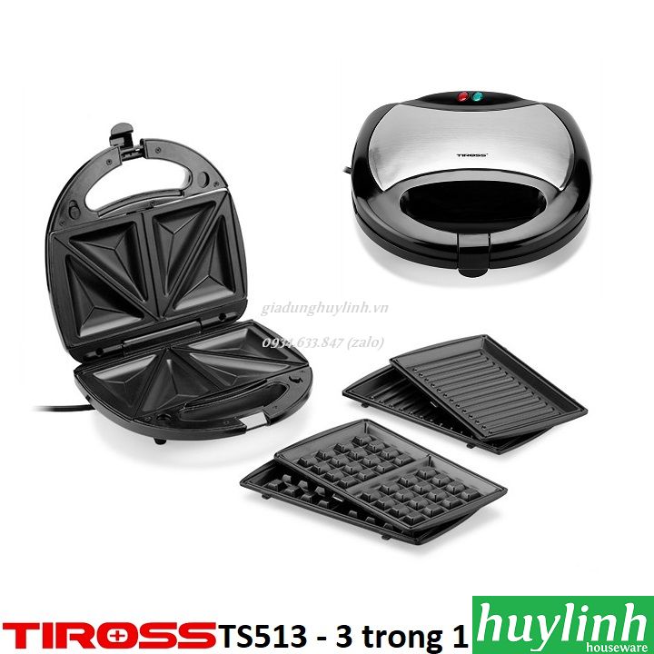 ✨Máy nướng bánh sandwich, hotdog, waffle Tiross TS513 - 3 trong 1 - 750W - Hàng chính hãng