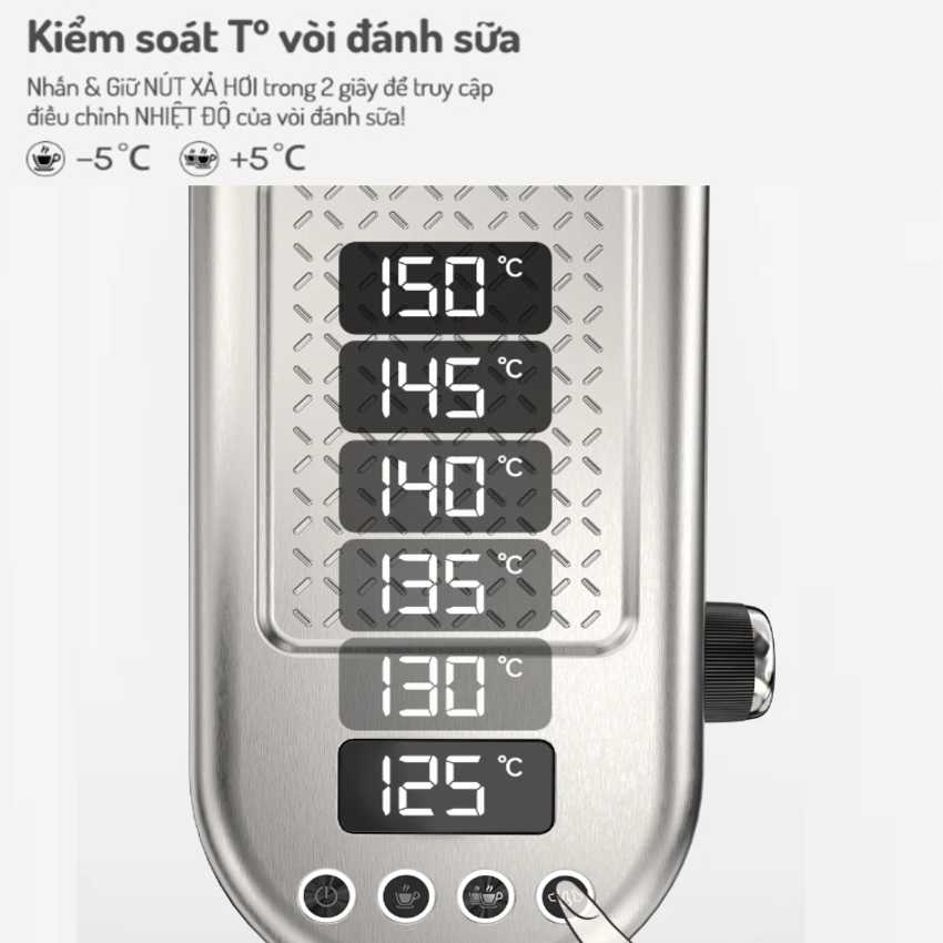 - Linh hoạt kiểm soát nhiệt độ đánh sữa 125~150ºC