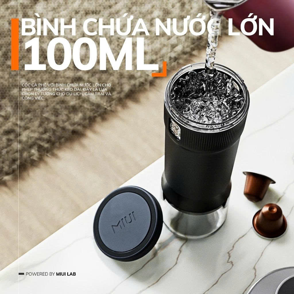Khả năng tương thích đa chức năng 3 trong 1, có thể chứa cả viên nang nhỏ và lớn, cũng như cà phê xay và các loại cà phê kiểu Ý, cung cấp nhiều lựa chọn pha phù hợp với sở thích của bạn.   Áp suất cao 15bar & công suất hiệu năng cao 100W, làm nóng nhanh, gia nhiệt đồng đều, tạo nồng độ cà phê cao hơn và lớp creamer mịn, hương vị đầy đặn, đảm bảo chất lượng cappuccino, espresso, latte ngon như pha máy  Thân chính làm bằng Tritan, không chứa BPA, khả năng chống va đập vừa cứng vừa nhẹ hơn nhiều so với thủy tinh.  Thiết kế nhỏ gọn và tiện lợi. Chỉ với một nút nhấn, bạn có thể bắt đầu pha cà phê mà không cần thiết lập phức tạp. Thiết kế di động giúp máy pha cà phê nhẹ và dễ mang theo, cho phép bạn thưởng thức cà phê thơm ngon mọi lúc, mọi nơi, dù ở ngoài trời, trên đường hay trong văn phòng.   Có thể tháo rời bộ phận để vệ sinh, làm sạch  Máy pha cà phê MIUI rất lý tưởng cho bạn bè/gia đình yêu cà phê và thường xuyên cắm trại/du lịch,.đáp ứng mọi nhu cầu pha các loại cà phê khác nhau của bạn trong suốt hành trình. Thông số sản phẩm: - Thương hiệu sản phẩm: MIUI CM1001A - Tên sản phẩm: Máy pha cà phê  đa chức năng - Điện áp: DC12V + USB - Công suất: 100W - Chỉ số áp suất: 15Bar - Phạm vi ứng dụng: Viên nén và bột cà phê - Chất liệu: Tritan - Màu sắc sản phẩm: Đen - Dung tích cốc cà phê: 100ml - Kích thước sản phẩm: 2156153mm - Trọng lượng sản phẩm: 0.6kg