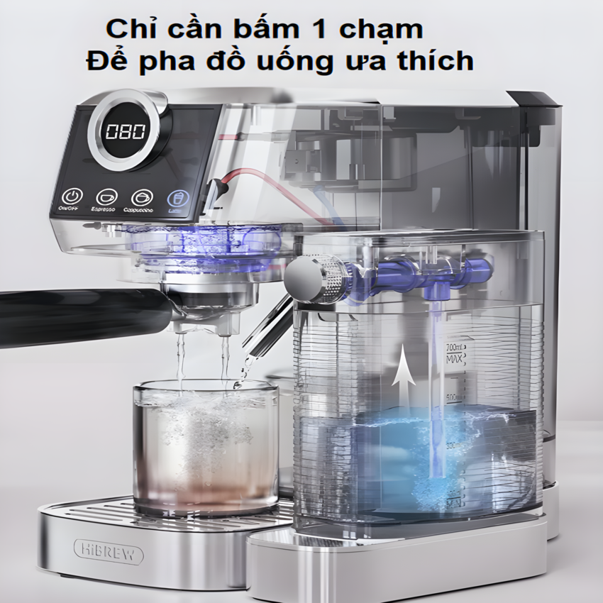Máy pha cà phê bán tự động Espresso, Cappuccino, Latte thương hiệu Mỹ cao cấp HiBREW H10B - Hàng Nhập Khẩu Tiếp nối thành công phiên bản Máy pha cà phê espresso bán tự động