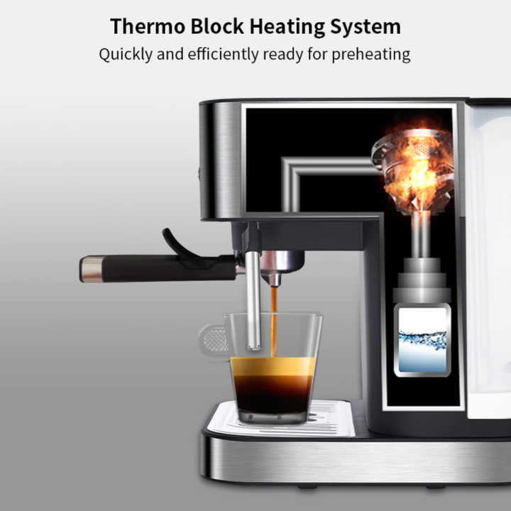 Bơm Italy áp suất 20 bar tạo ra tách cà phê đậm đà Công suất 1400W, điện áp 220-240V/50Hz-60Hz Gia nhiệt nhanh chóng, đảm bảo cà phê chiết xuất với nhiệt độ lý tưởng nhất