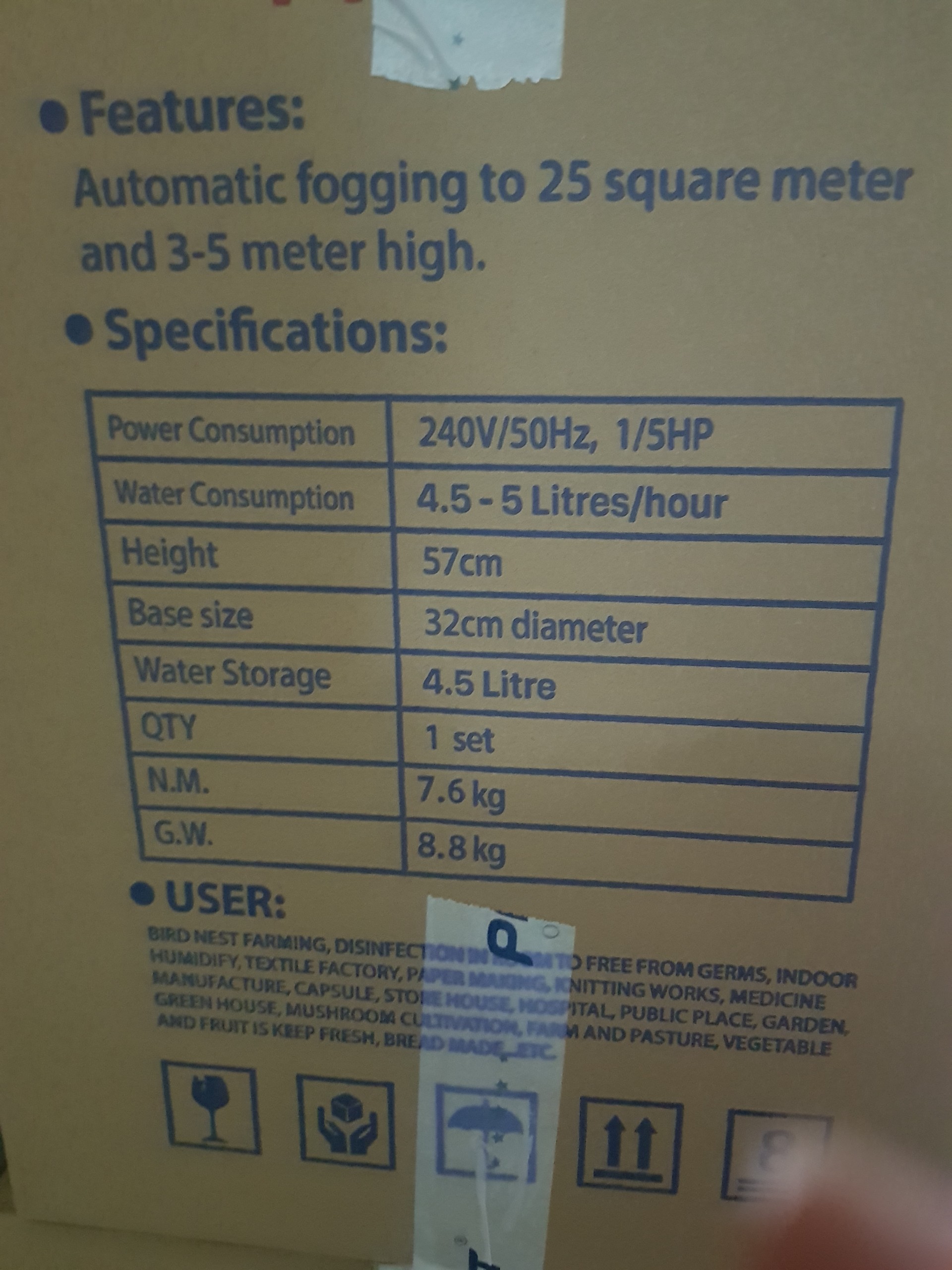 Mua tại TiktokThông số Nặng: 7,6 Kg Chất liệu: nhựa nguyên chất Phụ kiện kèm theo: 1 nón 3 hướng , 1 nắp lưới, 1 bộ chắn, 1 phao Công dụng: chuyên dụng cho nhà yến diện tích nhỏ, phòng khử trùng, làm ẩm trong nhà, nhà máy dệt, xưởng máy, các xưởng dêt nhà kho, dùng trong các vườn, nông trại chăn nuôi , trông trọt, các lò bánh mì, Ưu điểm: