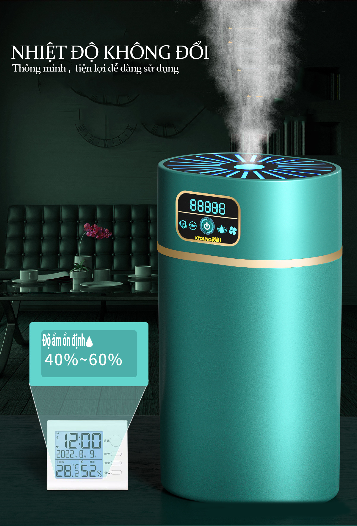 Cung cấp độ ẩm lí tưởng cho sức khỏe Phù hợp với các không gian lên đến 210m² Kết hợp hoàn hảo với điều hòa nhiệt độ Bảo vệ đồ nội thất, nhạc cụ, các