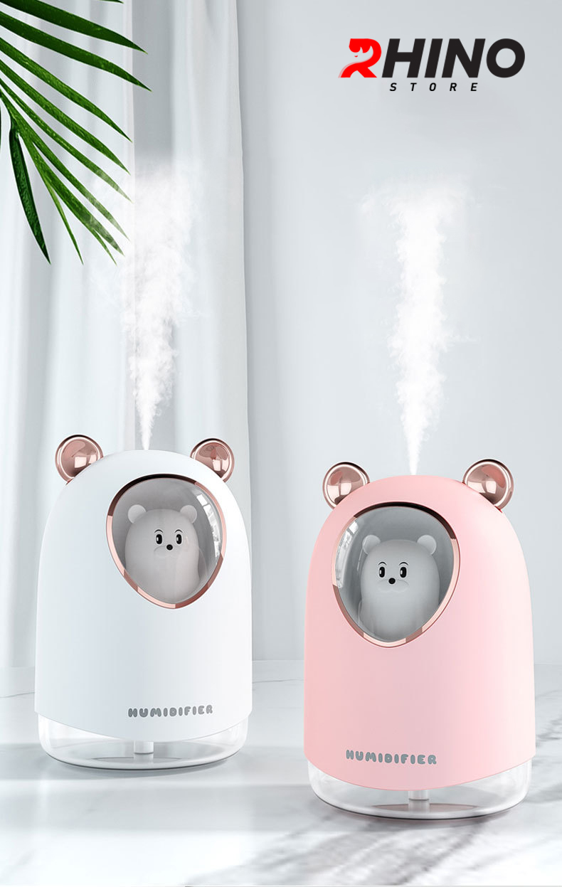 Mua tại TiktokMáy phun sương tạo ẩm hình con vật Rhino H904 dung tích 300ml, nhỏ gọn, không gây tiếng ồn, tích hợp đèn ngủ RGB nhiều màu, Hàng chính hãng Máy phun sương tạo ẩm là một thiết bị rất cần thiết đối với mọi gia đình trong thời tiết khô hanh, độ ẩm thấp với tác dụng chính là cấp thêm độ ẩm trong không khí. Từ đó giúp da không bị mất nước, khô nứt nẻ đặc biệt vùng môi và da mặt tạo ra môi trường sống thoải mái và dễ chịu nhất, không còn mặc cảm khi tiếp xúc với mọi người. Khi kết hợp với tinh dầu sẽ tạo ra bầu không khí dễ chịu, tránh nấm mốc và côn trùng ruồi muỗi (không nên lạm dụng và phải chọn đúng tinh dầu chất lượng tốt)
