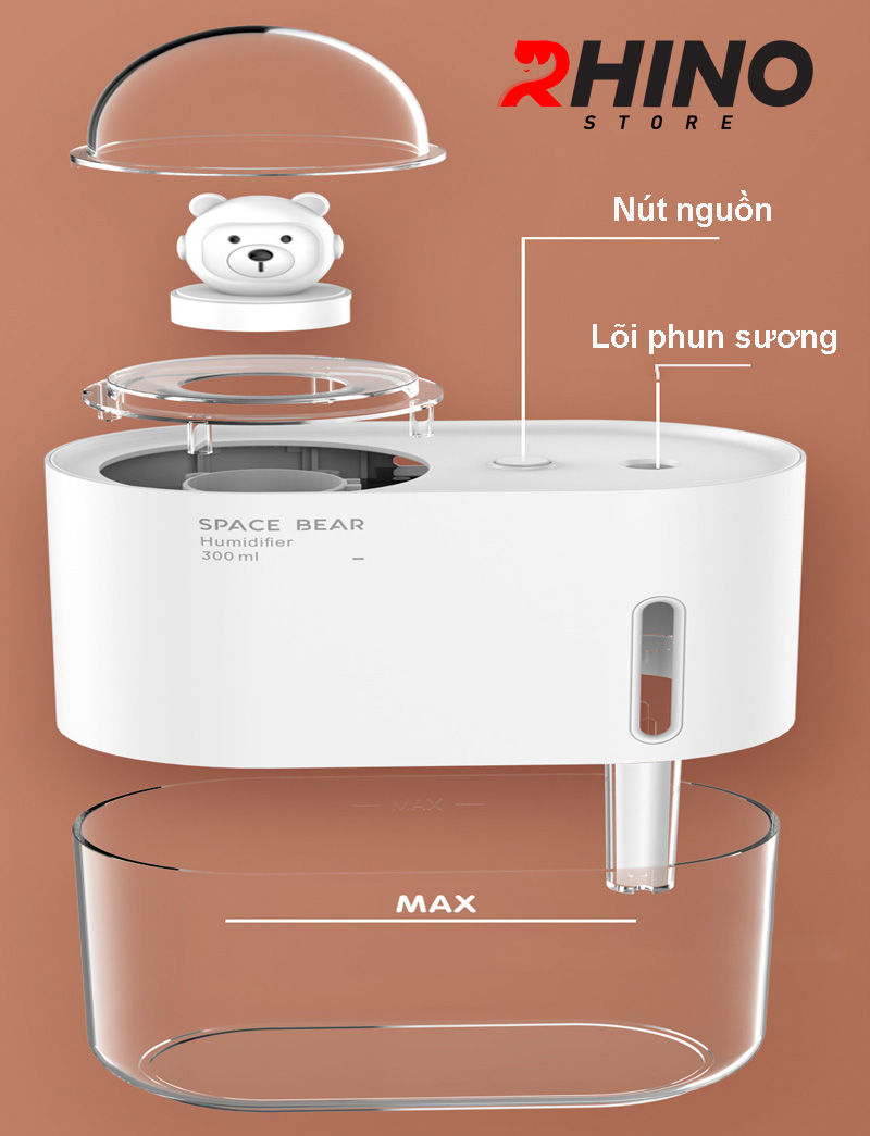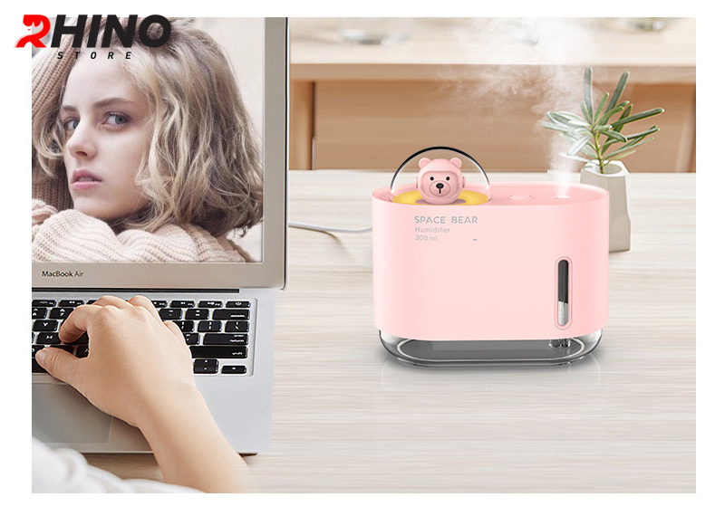 Mua tại TiktokMáy phun sương tạo ẩm hình gấu Rhino H905 dung tích 300ml, nhỏ gọn, không gây tiếng ồn, tích hợp đèn ngủ RGB nhiều màu, Hàng chính hãng Máy phun sương tạo ẩm là một thiết bị rất cần thiết đối với mọi gia đình trong thời tiết khô hanh, độ ẩm thấp với tác dụng chính là cấp thêm độ ẩm trong không khí. Từ đó giúp da không bị mất nước, khô nứt nẻ đặc biệt vùng môi và da mặt tạo ra môi trường sống thoải mái và dễ chịu nhất, không còn mặc cảm khi tiếp xúc với mọi người. Khi kết hợp với tinh dầu sẽ tạo ra bầu không khí dễ chịu, tránh nấm mốc và côn trùng ruồi muỗi (không nên lạm dụng và phải chọn đúng tinh dầu chất lượng tốt)