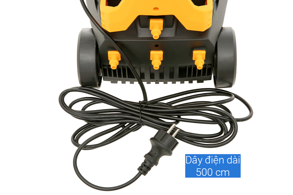 Ống phun 5m, ống cấp nước 2m và dây điện 5m được trang bị trên máy rửa xe giúp bạn có thể di chuyển máy linh hoạt và dễ dàng làm sạch vết bẩn ở khoảng cách xa.