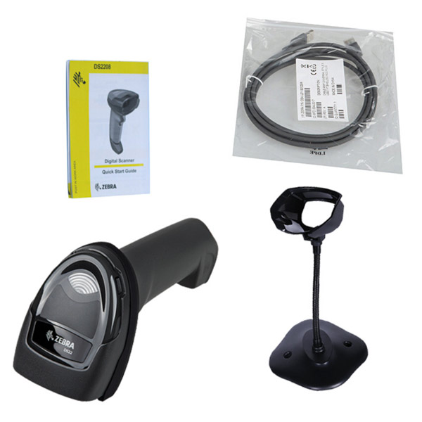 ✨Máy quét có dây Zebra DS2208,2D, USB Kit,black,gồm chân đế - Hàng chính hãng