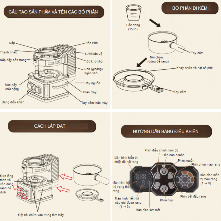 Hướng dẫn sử dụng máy rang hạt cà phê không khói tự động Wing Kwong WCR 150