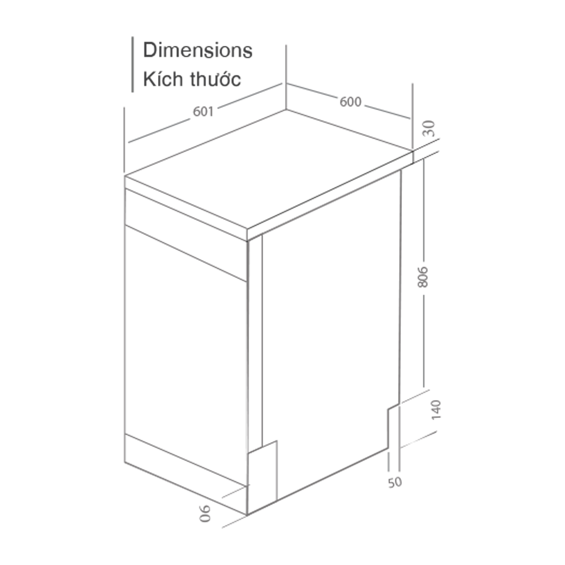 - Kích thước sản phẩm: 806x601x600mm