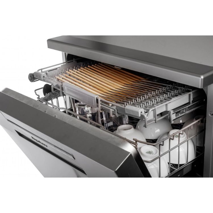 Máy rửa bát độc lập hoặc âm tủ 2 khay chứa cơ động + 1 khay đề thìa, đũa, dĩa, dao, kéo Tiết kiệm đến gần 50% năng lượng và thời gian, ngoài ra giúp