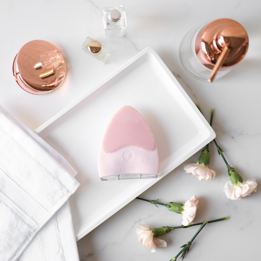 - Giới thiệu Blossom, bàn chải làm sạch da mặt tuyệt vời giúp thu nhỏ lỗ chân lông và tẩy da chết. Homedics Silicone Facial Cleanser cung cấp các rung động âm thanh để làm sạch nhẹ nhàng hoặc mát xa tiếp thêm sinh lực phù hợp với mọi loại da.