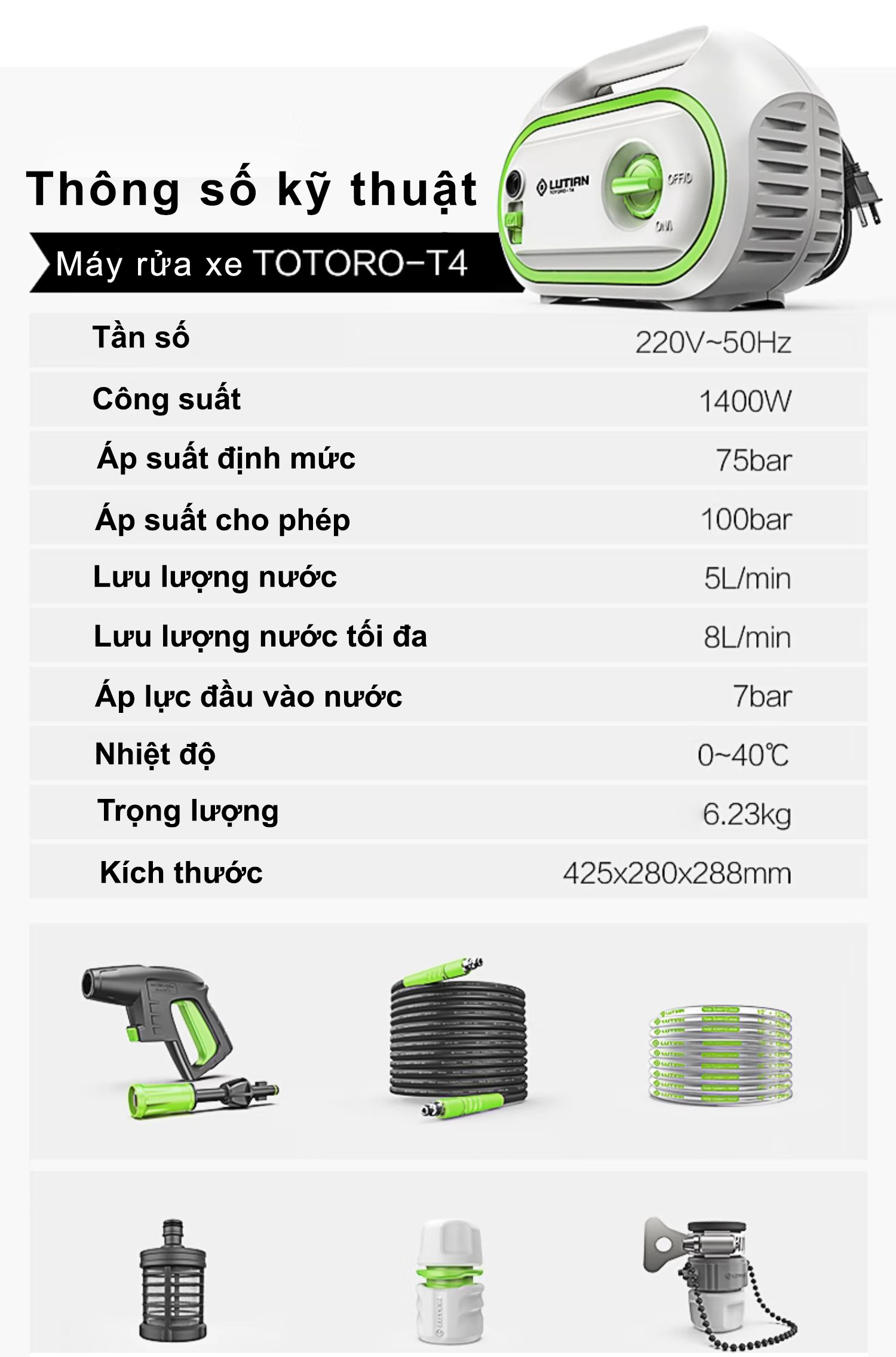✨Máy Rửa Xe Áp Lực Cao ABG Lutian Totoro-T4 Công Suất 1400w 100bar, Máy Phun Xịt Rửa Xe Cao Áp, Chuyên Dụng Cho Cửa Hàng Rửa Xe, Nhà, Xưởng Công Nghiệp - Hàng Chính Hãng