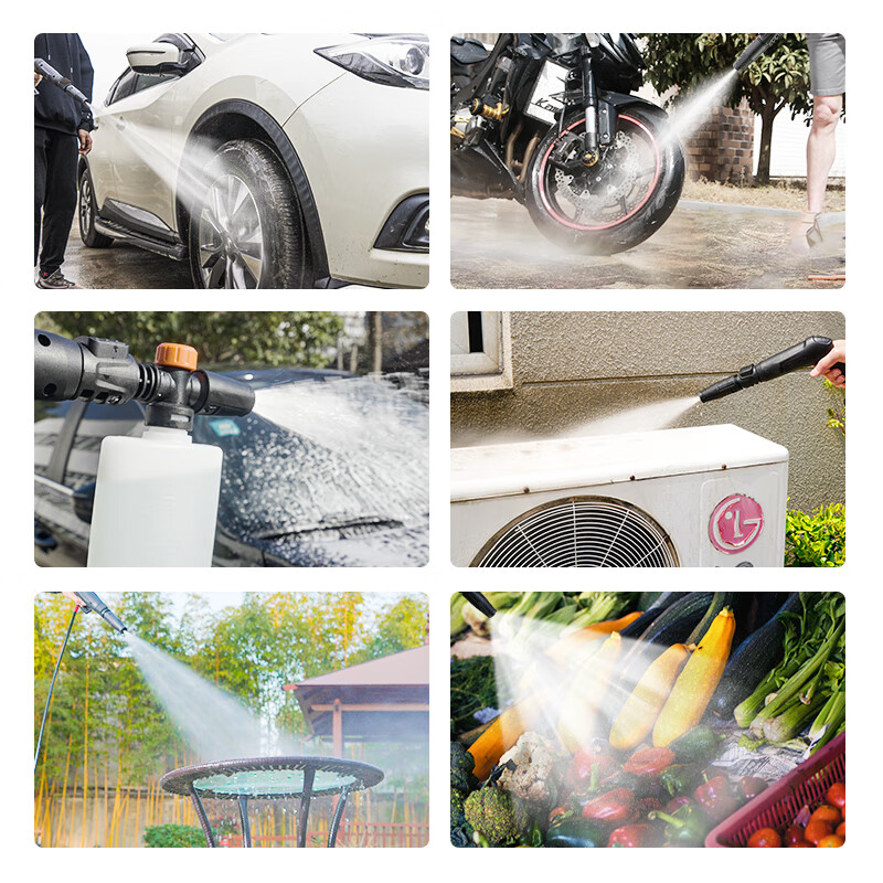 CÔNG DỤNG: +Xịt rửa xe máy, xe ô tô + Rửa sân vườn, chuồng trại, nhà cử + Tưới cây cảnh, các loại hoa, quả + Xịt rửa các vật dụng: thảm, điều hòa, Cửa