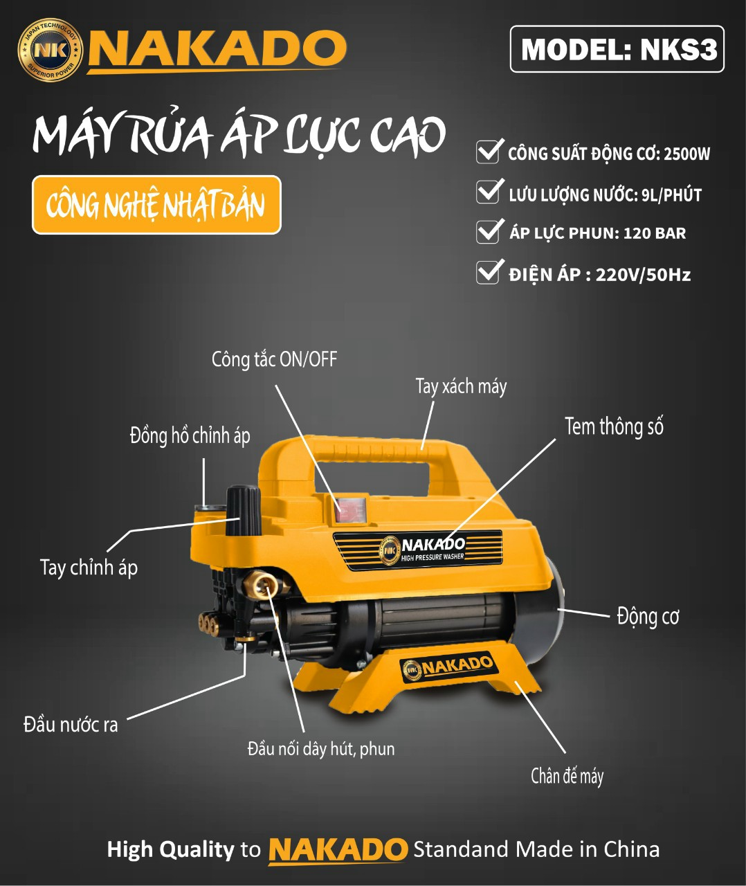 ✨Máy rửa xe có CHỈNH ÁP - NAKADO S3 - Công suất 2500W - JAPAN Technology