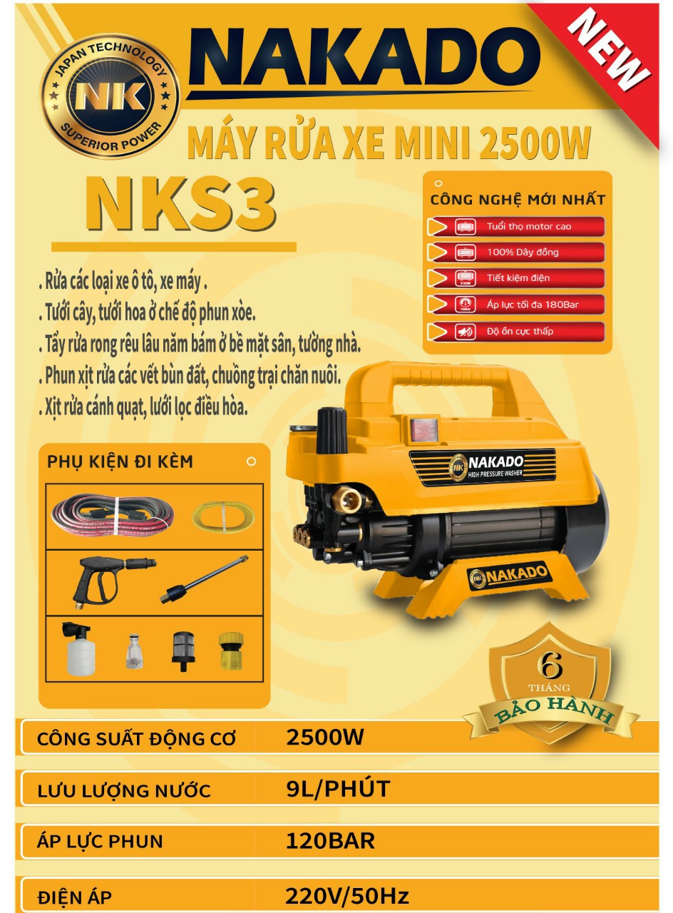 Mua tại TiktokTHÔNG SỐ KỸ THUẬT: MÁY RỬA XE NAKADO 2500W - JAPAN TECHNOLOGY