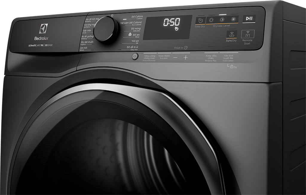 • Tiện ích:Đồng bộ SyncDryĐiều khiển qua ứng dụng ElectroluxTăng cường chống nhăn Extra AnticreaseTùy chỉnh thời gian và mức độ sấySấy diệt khuẩn HygieneKết nối từ xa Remote StartKhóa trẻ emHẹn giờ hoàn thànhHiển thị bằng màn hình đèn LEDCông nghệ Woolmark dành để sấy riêng cho đồ lenCông nghệ sấy siêu im lặng Extra SilentCông nghệ SensiCare chăm sóc quần áo tránh bị hư tổnCông nghệ DelicateCare bảo vệ đồ len không bị biến dạngCông nghệ ColourCareChế độ Refresh loại bỏ mùi ẩm mốcChương trình sấy đồ hỗn hợp thông minh MixedDryChương trình sấy đồ mỏngChuông báo lấy quần áo khi kết thúcCảm biến độ ẩm 3DSense để điều chỉnh thời gian sấy phù hợpReverse Tumbling sấy đảo chiều chống nhăn, giúp áo quần không bị xoắn rốiĐèn chiếu sáng lồng sấyTạm dừng thêm quần áoTự khởi động lại khi có điện