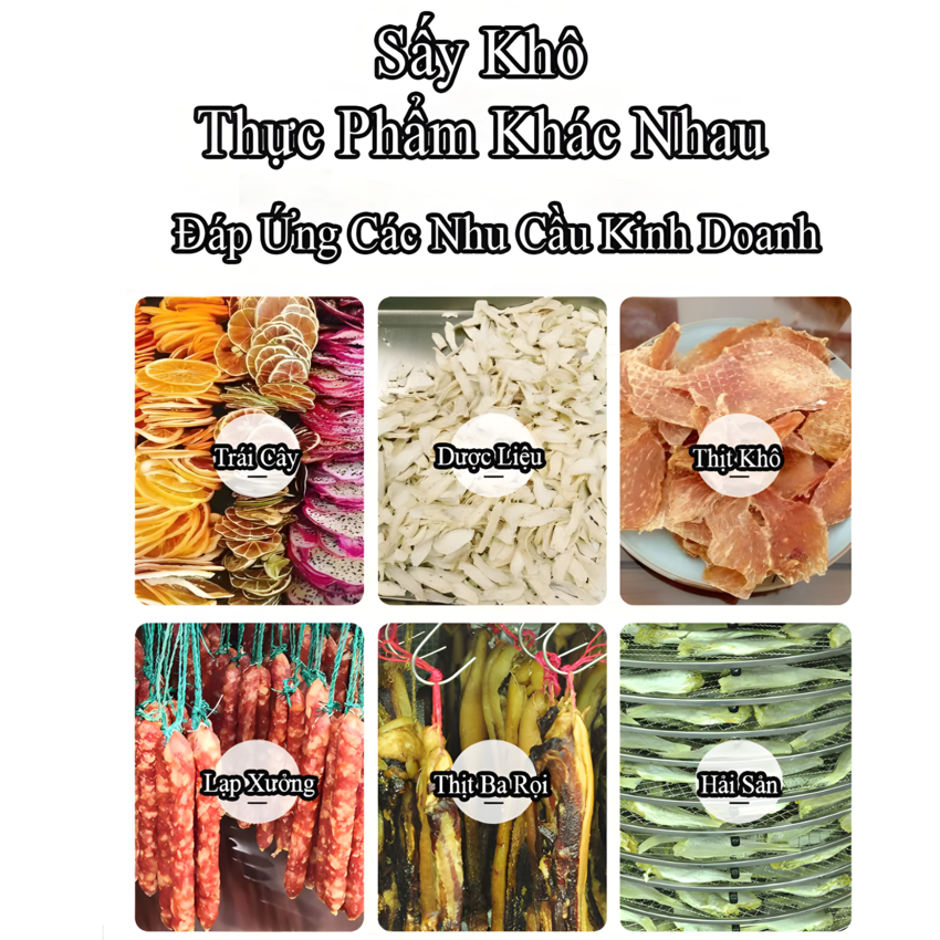 - Sấy khô, sấy dẻo trái cây, rau củ quả, thịt, cá, tôm khô,....