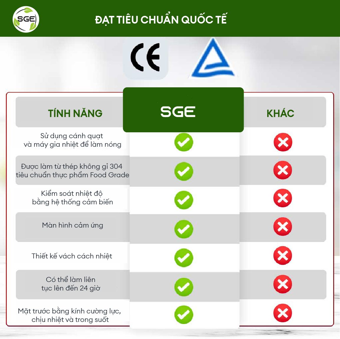 Mua tại TiktokTủ sấy thực phẩm GE-Black của SGE được thiết kế và phát triển liên tục. Phiên bản đặc biệt GE-Black dành cho hộ gia đình và nhà hàng hàng cao cấp với thân hình nhỏ gọn, tiết kiệm điện nhưng hiệu suất làm việc vẫn không đổi và có thể làm liên tục lên đến 24 giờ.
