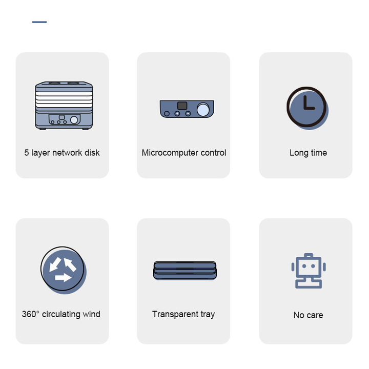 Loại máy: Máy sấy gia đình Công suất: 700W Số khay sấy: 6 khay Kích thước khay sấy: 30 x 28 cm Chất liệu khay: Inox 304 Nhiệt độ sấy: 35 - 85°C Chức năng: