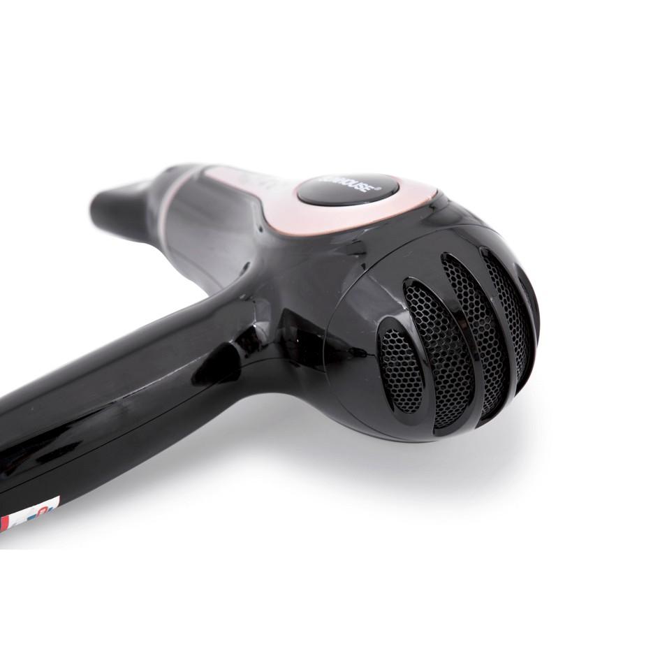 Máy sấy sử dụng công suất 1800W với 2 chế độ, 2 mức nhiệt khác nhau. Bạn có thể tùy chỉnh linh hoạt để sấy khô nhanh mà không hại đến tóc, tiết kiệm điện năng, thời gian và công sức. Đặc biệt, máy chạy êm, hạn chế tiếng ồn gây khó chịu cho những người xung quanh.