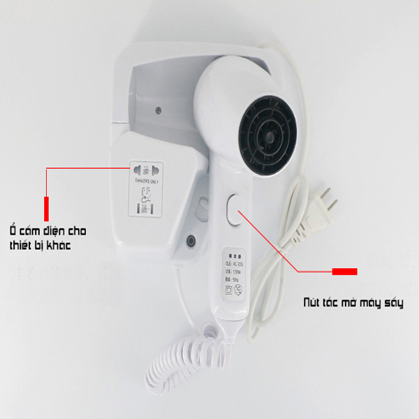 MÁY SẤY TÓC TREO TƯỜNG 3122   Điện áp: AC220V 50Hz Công suất: 1200W Kích thước: 230x90x185mm Lớp chống thấm 1PX1 Tốc độ gió: 13m/s Lưu lượng gió: 71m3/h Chất liêu: nhựa ABS có ổ cấm Bảo hành: 24 tháng.   Máy sấy tóc hai chế độ sấy vừa và sấy mạnh để tùy vào nhu cầu sử dụng của khách hàng. Máy sấy tốc treo tường SM-3122 là một trong những vật dụng nội thất cần thiết chất lượng cao. Điểm nhấn ấn tượng mạnh mẽ bởi tính thẩm mỹ cao, được khoác lên thân mình màu trắng sang trọng pha chút nhã nhặn, giản đơn mà cũng vô cùng tinh tế. Được thiết kế tựa như chiếc điện thoại để bàn quen thuộc, dây lò xo mềm dẻo co giản có thể kéo dài ra và tự động thu lại, giúp người dùng sử dụng  máy linh hoạt mà không bị vướng víu như những máy tóc đây dài bình thường. Máy nhỏ nhẹ, gắn trực tiếp lên tường bền chắc mà không lo rơi vỡ, không làm tốn diện tích không gian. Ưu điểm nổi trội làm nên sự khác biệt của thiết bị này là ổ cắm ngay trên thân máy, đề phòng tolet chỉ có 1 ổ cấm khi cần phải sử dụng thêm thiết bị điện khác.   Động cơ chất lượng cao với bức xạ thấp nên đảm bảo độ an toàn, âm thanh khi sấy ở mức độ thấp, không gây ồn ào. Tạo gió mạnh, lượng nhiệt vừa đủ không gây bỏ khó chịu cho da đầu, không làm tổn thương hay khô xơ tóc. Máy sấy tóc thường được lắt đặt trong phòng tắm khách sạn, khu nghĩ dưỡng, resort, gia đì   Giá sản phẩm trên Tiki đã bao gồm thuế theo luật hiện hành. Tuy nhiên tuỳ vào từng loại sản phẩm hoặc phương thức, địa chỉ giao hàng mà có thể phát sinh thêm chi phí khác như phí vận chuyển, phụ phí hàng cồng kềnh,