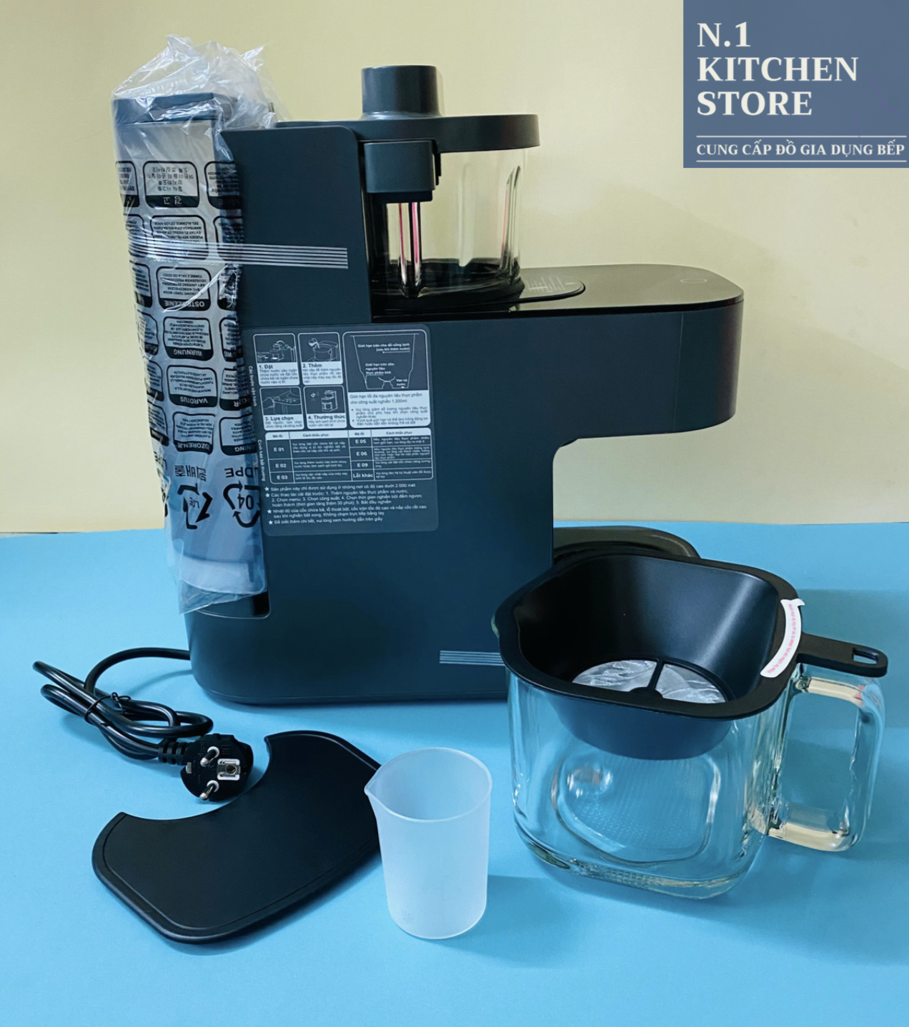 • Led trạng thái: Chỉ báo chương trình được chọn Lưỡi dao được làm bằng thép không gỉ cao cấp Thép không gỉ là một trong những chất liệu thường được nhà sản xuất Châu âu ưu tiên đưa vào sản xuất các sản phẩm gia dụng cao cấp. Bởi đặc tính chống oxi hoá, bền với thời gian và không làm ảnh hưởng đến sức khoẻ người tiêu dùng. Máy sữa hạt đa năng KU DKS1281 được thiết kế với 4 lưỡi dao cứng cáp và vô cùng sắc bén bằng thép không gỉ tạo công suất hoạt động bền hơn. Chương trình tự động phù hợp nhiều nhu cầu Máy sữa hạt đa năng KU DKS1281 không chỉ đơn thuần có nhiệm vụ ép sữa từ các loại hạt mà nó còn được trang bị lên tới 9 chương trình tự động như: Sữa đậu (Dry bean/ Soaked bean), Sữa Ngũ cốc (Grain), Sữa gạo (rice paste), Pha cà phê (coffee), Sữa lắc (milk shake), Sinh tố (Juice), Súp cá (Fish soup), Làm sữa thơm (Fragant milk / Baked bean). Bạn có thể thoả sức chế biến các món ăn tuỳ theo sở thích của mình như: sinh tố, nấu súp, sữa hạt, sữa lắc….Đây là lí do giải thích tại sao sản phẩm luôn được lòng người tiêu dùng kể từ khi mới ra mắt. Chân đế chống trượt Để thuận tiện cho quá trình sử dụng nhà sản xuất đã thiết kế riêng một chân đế cao su nhằm giúp cho sản phẩm được cố định chắc chắn giúp bạn thực hiện mọi thao tác dễ dàng. Hướng dẫn sử dụng Máy sữa hạt đa năng KU DKS1281 Bước 1: Đổ nước vào bình nước phía sau máy. Bước 2: Đóng nắp bình nước. Bước 3: Cho nguyên liệu vào khoang xay. Đối với nguyên liệu to thì cắt thành các miếng nhỏ. Bước 4: Đóng nắp khoang xay. Bước 5: Đặt bình chứa nước thải vào bên dưới khoang xay. Bước 6: Nhấn nút Menu cho đến khi LED dừng ở chương trình lựa chọn. Các chương trình gồm có: Sữa đậu (Dry bean/ Soaked bean), Sữa Ngũ cốc (Grain), Sữa gạo (rice paste), Pha cà phê (coffee), Sữa lắc (milk shake), Sinh tố (Juice), Súp cá (Fish soup), Làm sữa thơm (Fragant milk / Baked bean) Bước 7: Ấn nút Start/Cancel để bắt đầu xay, nấu sữa hạt. Bước 8: Chờ đợi máy nấu xong thì máy sẽ tự vệ sinh máy (Sau khi kết thúc một chương trình, thiết bị sẽ khởi động chế độ vệ sinh tự động. Nếu như không muốn máy tự động vệ sinh thì mình có thể chọn tiếp chương trình trước khi máy thao tác vệ sinh) Việc của Bạn là lấy bình đựng nước để đổ nước thải và lấy bình đựng thành phẩm đổ vào cốc và thưởng thức. Thông số kỹ thuật: Model: KU DKS1281 Nguồn điện: 220 V~ 50 Hz Công suất xay/nấu: 400 W/1000 W Dung tích nấu: 300-1200ml Kích thước: 39x19x41 cm Các chương trình: 9 chương trình tự động Phụ kiện: Ca đong nước Đặc điểm nổi bật: Nấu chín thực phẩm bằng hơi nước; Tự động vệ sinh; Bảo vệ quá nhiệt; Hẹn giờ 24h,… Thời gian bảo hành: 12 tháng