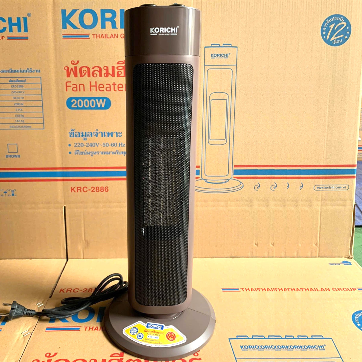 Quạt sưởi gốm PTC Ceramic Korichi Thái Lan KRC-2886 công suất 2000W, bảo hành 12 tháng chuẩn Thái