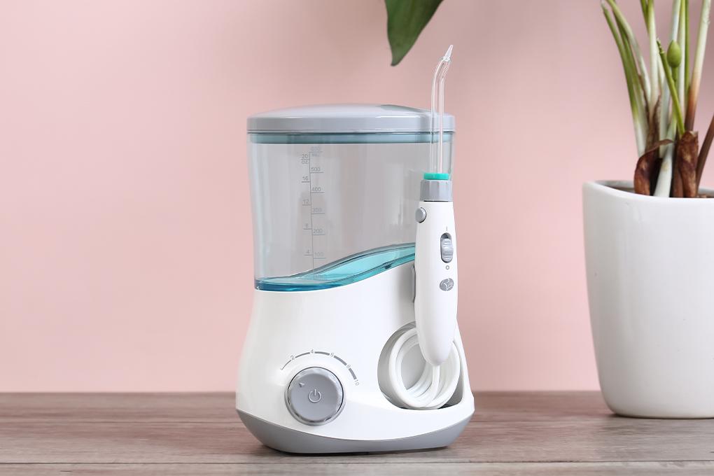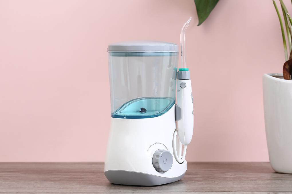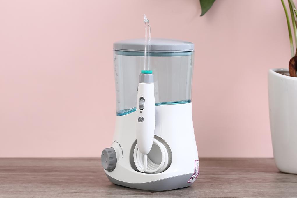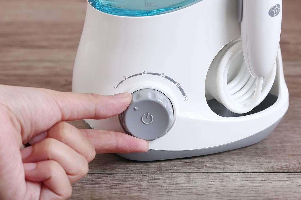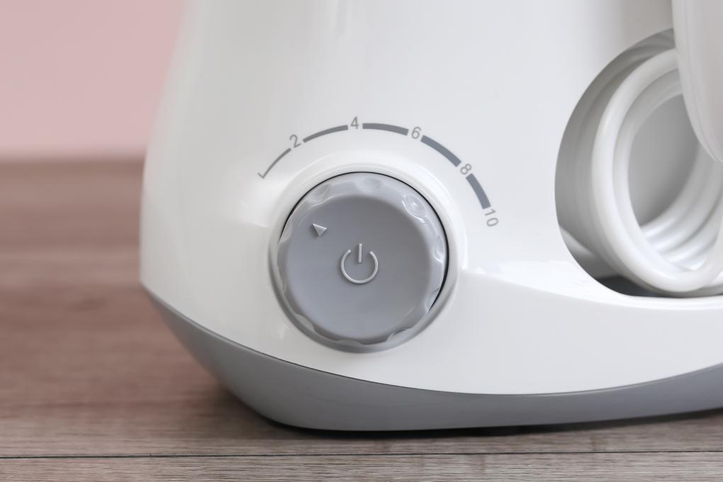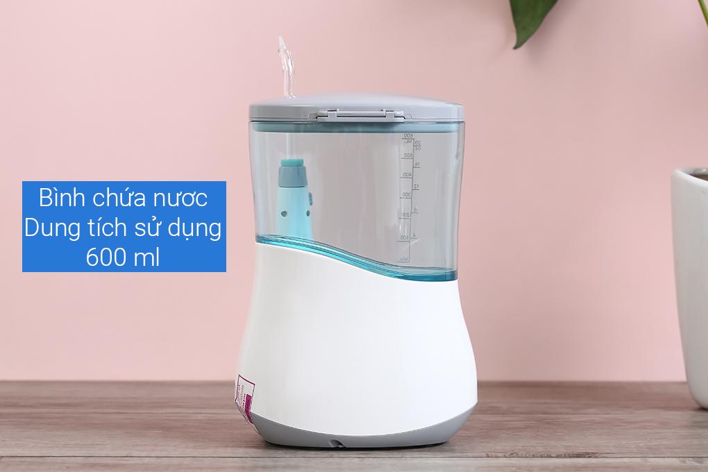 Máy tăm nước dùng trong gia đình Dung tích bình chứa nước 600ml Điện áp 100-240V Tần số 50/60Hz Công suất 18W Gồm 6 đầu tăm 10 mức áp lực nước