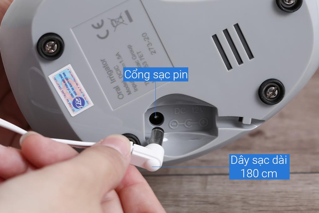 - Máy tăm nước sử dụng pin sạc thường có kích thước nhỏ gọn để có thể mang theo người dễ dàng khi ra ngoài. Nhưng bù lại thường có kích thước pin nhỏ, động