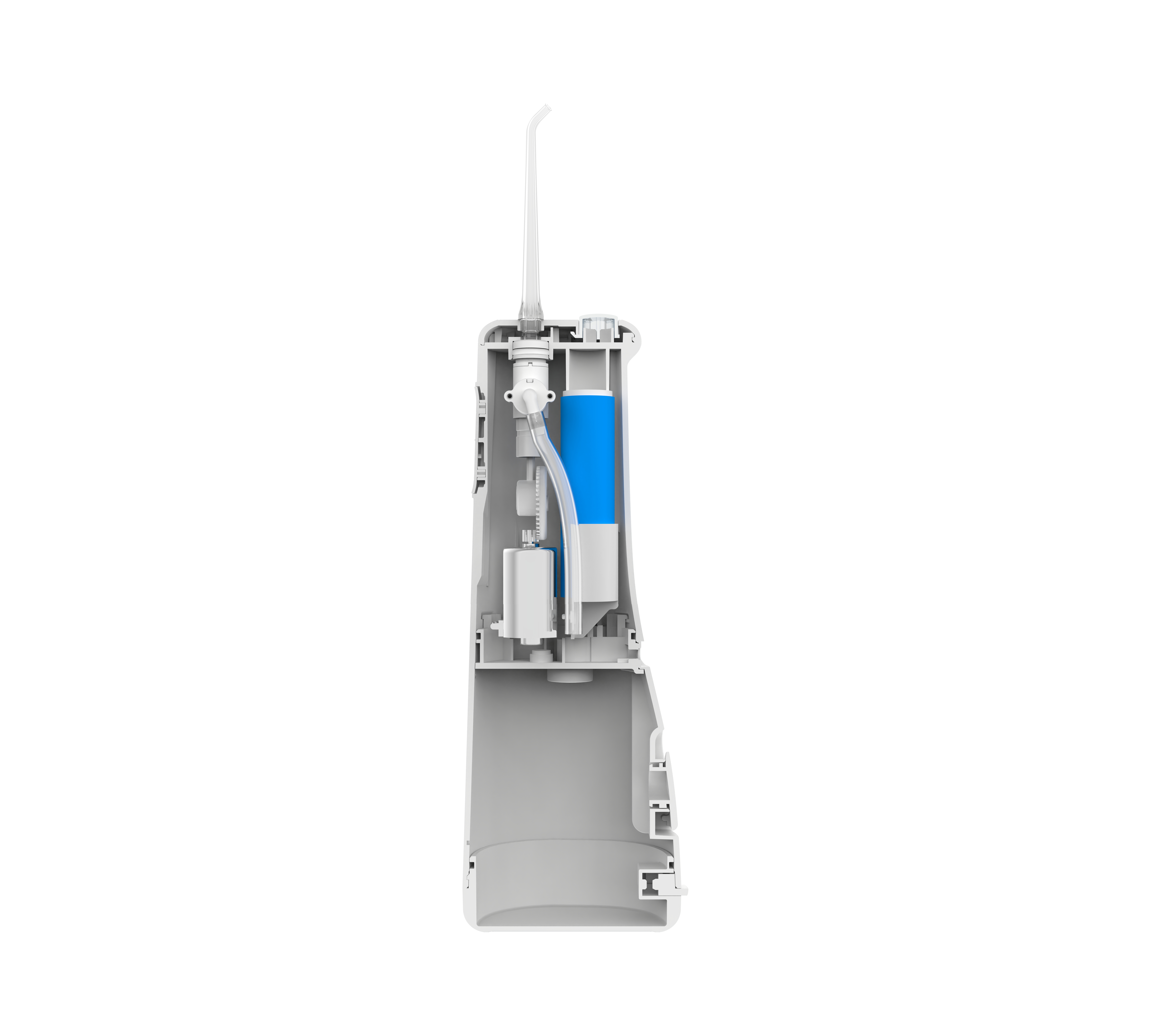 Kiểu dáng mới, gọn nhẹ, hiện đại. Hệ thống kiểm soát áp suất tiên tiến với 10 cấp độ điều chỉnh khác nhau kèm theo 02 chế độ vệ sinh răng hoặc massage nướu. Áp