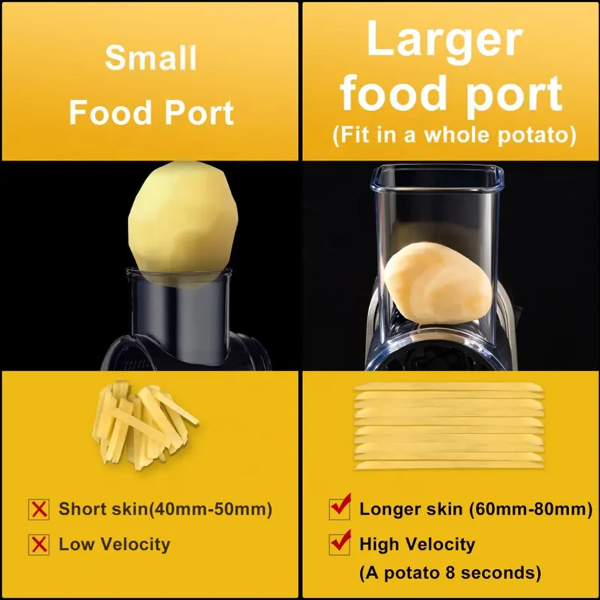 - Miệng ống lớn, giúp thái nhiều loại rau củ khác nhau