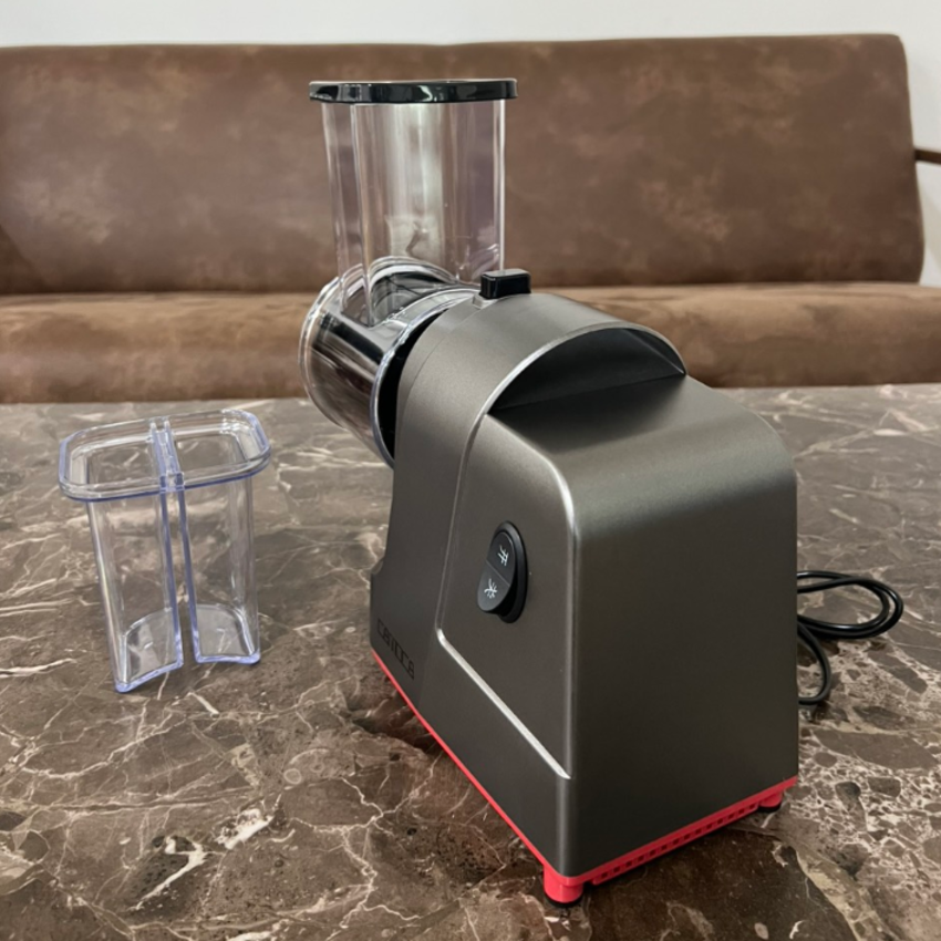 - Đa phần các dòng máy cắt rau củ quả gia đình có thiết kế nhỏ gọn, trọng lượng vừa phải. Bạn có thể đặt máy ngay trên kệ bếp hoặc mặt bàn để thao tác.