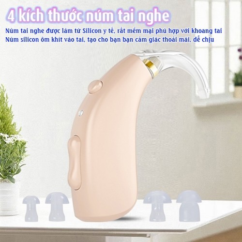 • Chế độ phòng họp Phù hợp đeo cho cả hai tai Máy trợ thính không dây Axon A-133 sở hữu đầu xoay 360 phù hợp để đeo cho cả 2 tai. Ưu điểm nhỏ này sẽ mang lại cho người dùng sự tiện lợi và giúp người dùng tiết kiệm được chi phí hơn. Thiết kế nhỏ gọn, xinh xắn Máy trợ thính không dây Axon A-133 được thiết kế siêu nhỏ gọn với trọng lượng là 10g, đem đến cho bạn cảm giác thoải mái hơn khi phải đeo tai nghe trợ thính nhiều giờ liền mà không bị đau tai. Máy còn được thiết kế cực kì thẩm mỹ giúp người khiếm thính không bị mất tự tin khi sử dụng. Sản phẩm phù hợp cho cả người già và trẻ tuổi. Chất liệu vành tai nghe mềm mại Vành tai nghe của máy trợ thính Axon A-133 được làm từ Silicon mềm dẻo giúp bạn có cảm giác thoải mái, không còn ngứa ngáy khó chịu khi sử dụng lâu dài. Pin sạc Lithium dung lượng 55 mAh Máy trợ thính Axon A-133 dùng pin sạc Lithium cao cấp, cho độ bền cao. Dung lượng pin lớn 55mAh, cho thời gian sử dụng liên tục trong nhiều giờ. Vô cùng tiện dụng không cần thay pin, tiết kiệm được nhiều chi phí. 4 kích thước núm tai nghe Máy trợ thính không dây Axon A-133 được trang bị 4 núm silicon với 4 kích thước khác nhau, thích hợp sử dụng cho mọi lứa tuổi hoặc kích thước tai (thông tin tham khảo bên dưới):