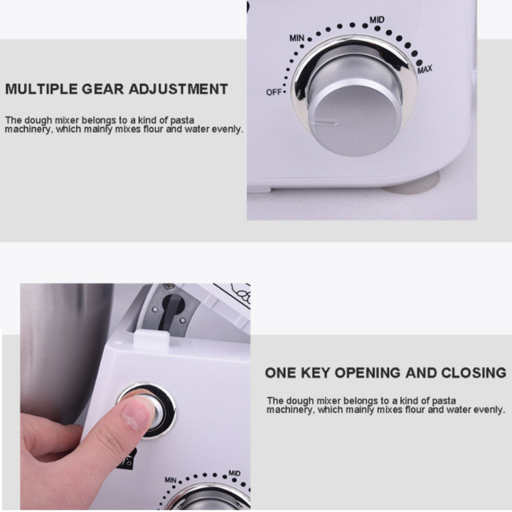 - Toàn bộ phần thân máy được làm từ chất liệu nhựa ABS cao cấp có độ bền cao, chắc chắn. Chất liệu nhựa cũng mang lại vẻ ngoài sáng bóng, sạch sẽ, dễ lau chùi, không dễ bám bột bánh, bụi bẩn, đảm bảo vấn đề vệ sinh an toàn thực phẩm. 3 mức độ vận hành lần lượt là MIN, MID và MAX