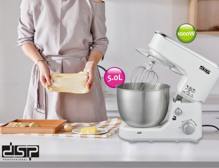 ✨Máy trộn bột, đánh trứng 3 tốc độ đánh cao cấp thương hiệu DSP - 2 màu: Đen và Trắng - Công suất: 1000W - Dung tích: 5.0 lít - Hàng Nhập Khẩu