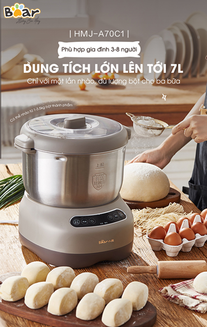 Review Máy nhồi bột, nhào bột ủ bột Bear 7L A70C1 chính hãng