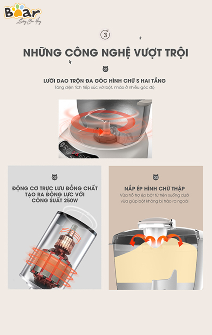 Máy nhồi trộn bột Bear 7L nhào bột, ủ bột tự động, âu trộn thép không gỉ – Hàng chính hãng bảo hành 18 tháng 6 Lý do nên mua MÁY NHỒI TRỘN BỘT BEAR