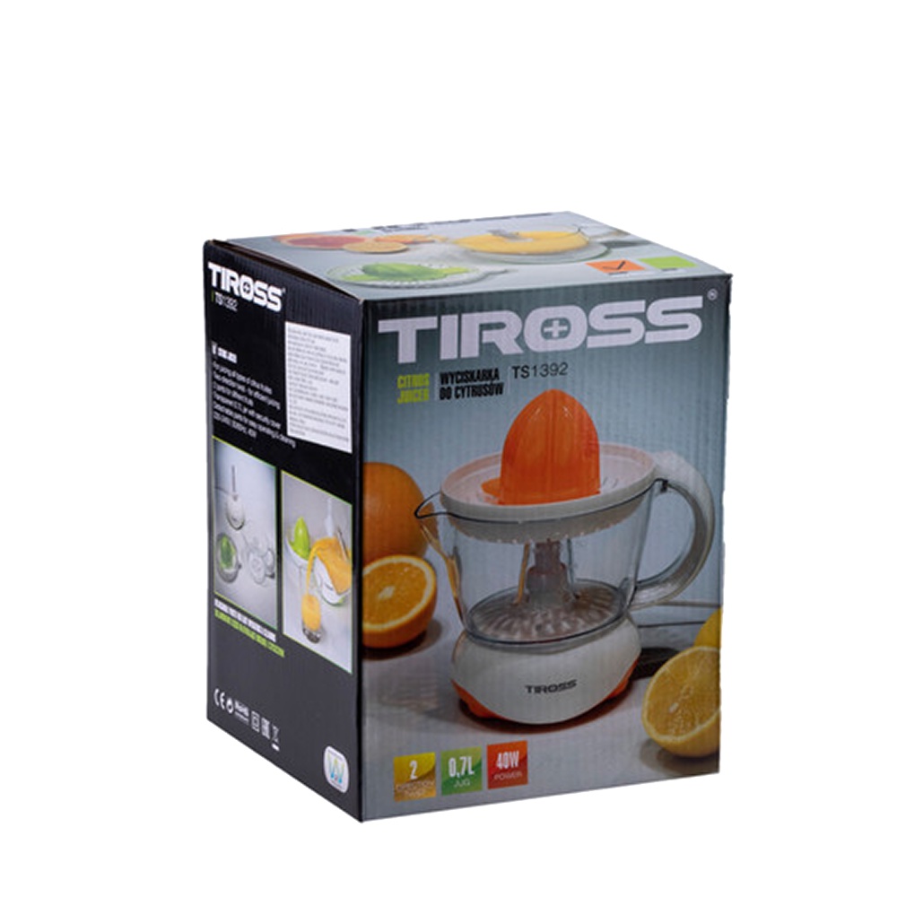 Máy Vắt Cam Tiross TS1392 có thiết kế kết hợp hai màu trắng xanh lá trang nhã, đặc biệt với chóp nón liên tục xoay trái và phải để tách nước trái cây hoàn toàn khỏi vỏ giúp cho chúng ta vắt nước cam thật là dễ dàng và nhanh chóng.