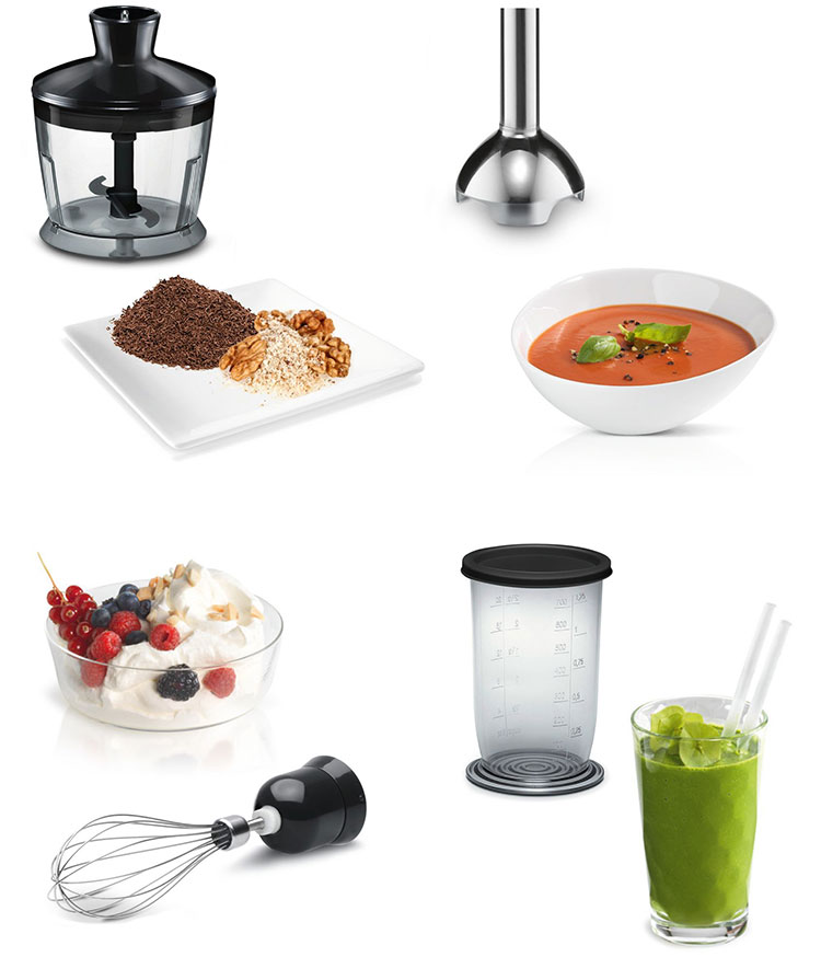 Máy xay sinh tố Bosch thiết kế kiểu cầm tay gọn gàng, nhẹ nhàng, có thiết kế chống trượt, cầm chắc tay, sử dụng tiện lợi Máy xay sinh tố đa năng hoạt động với