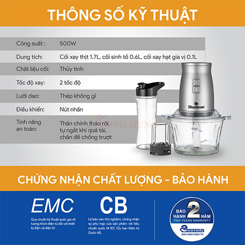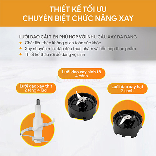 Công suất xay: 500W – Đảm bảo khả năng xay nhanh và nhuyễn nhiều loại nguyên liệu.