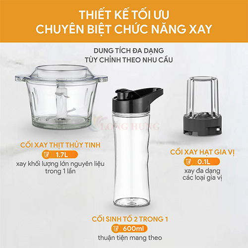 Cối xay thịt: 1.7 lít – Lý tưởng để xay thịt, cá, làm giò chả cho gia đình.