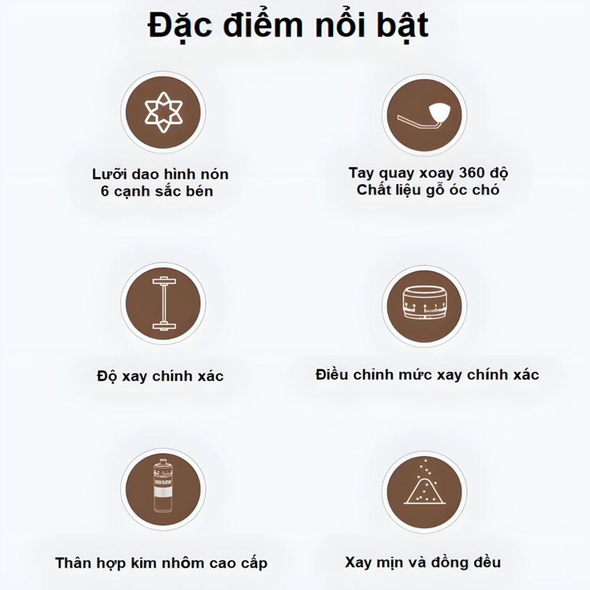 - Dung lượng trên 1 lần xay: tối đa 30g cà phê trên mỗi lần xay