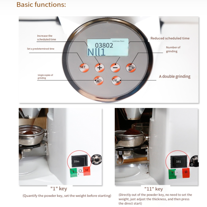 - Máy có bảng điều khiển cơ tích hợp màn hình LCS dễ thao tác. Chỉ bằng một cái chạm nhẹ bạn có thể tùy chỉnh định lượng cafe cho mỗi ly một cách chính xác. Màn hình có hiển thị các thông số một cách rõ ràng. Chất lượng hạt cà phê xay ra đều và mịn nhất
