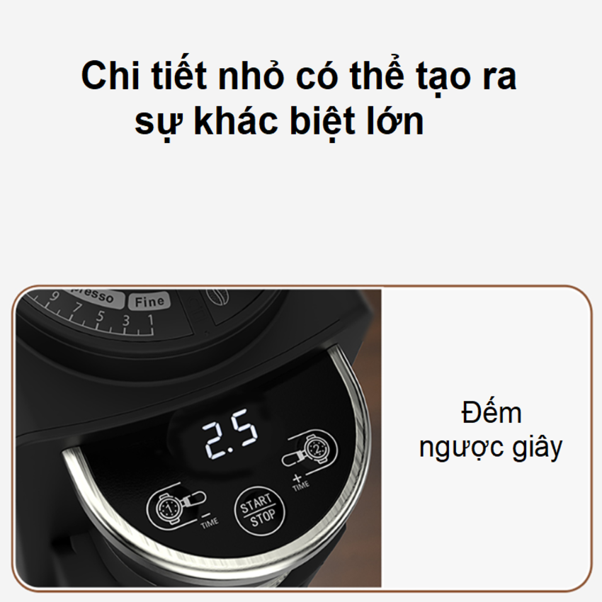 - Với lưỡi dao chất liệu thép không gỉ SS420 bền bỉ bền bỉ sở hữu 31 cấp độ xay, từ dạng thô đến dạng mịn. Chính vì thế nó có thể đáp ứng tối thiểu độ mịn cho 1 ly cà phê espresso chuẩn Ý. Thông số kỹ thuật