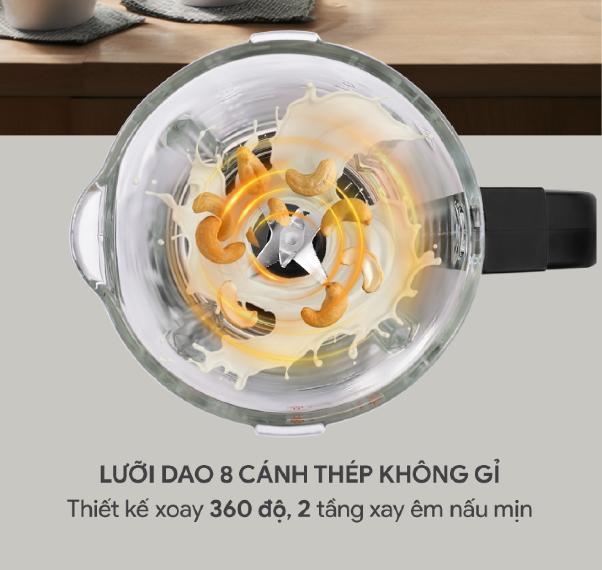 Đặc điểm nổi bật - Máy làm sữa hạt đa năng sử dụng để xay sinh tố, làm sữa hạt các loại, nấu cháo,... - Cối xay thủy tinh cường lực, dung tích 1.75 lít tiện dụng.