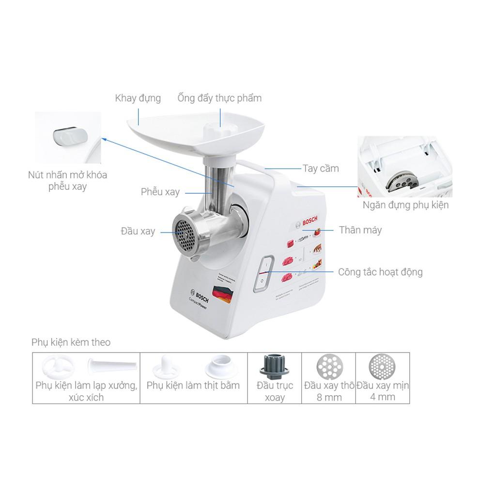 ✨Máy xay, nghiền thịt bằm Bosch 500W (MFW3520W) - SX Châu Âu - Hàng chính hãng