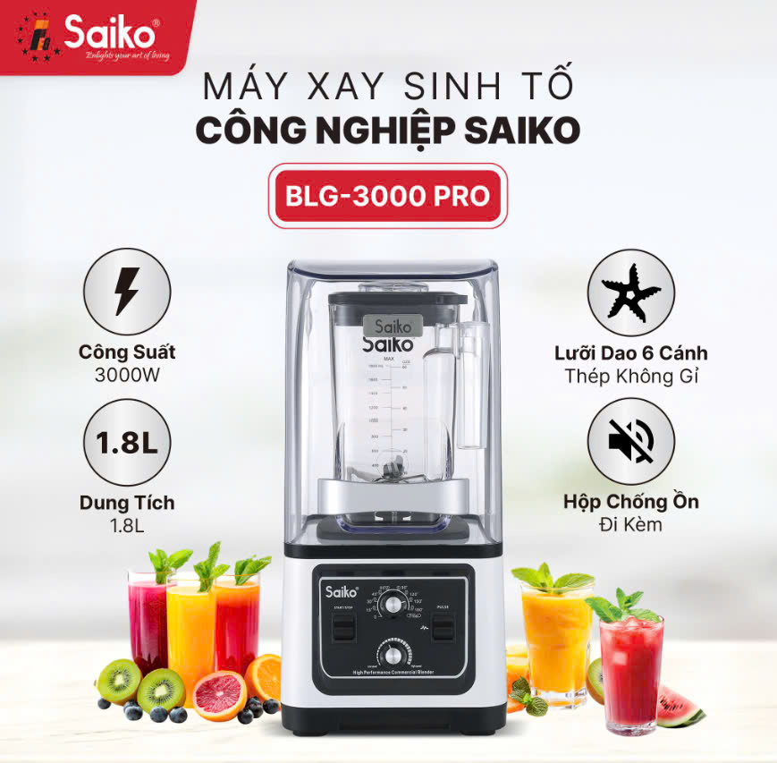 Máy xay sinh tố công nghiệp Saiko BLG-2800 PRO – Sức mạnh bền bỉ, hiệu suất vượt trội cho mọi mô hình kinh doanh