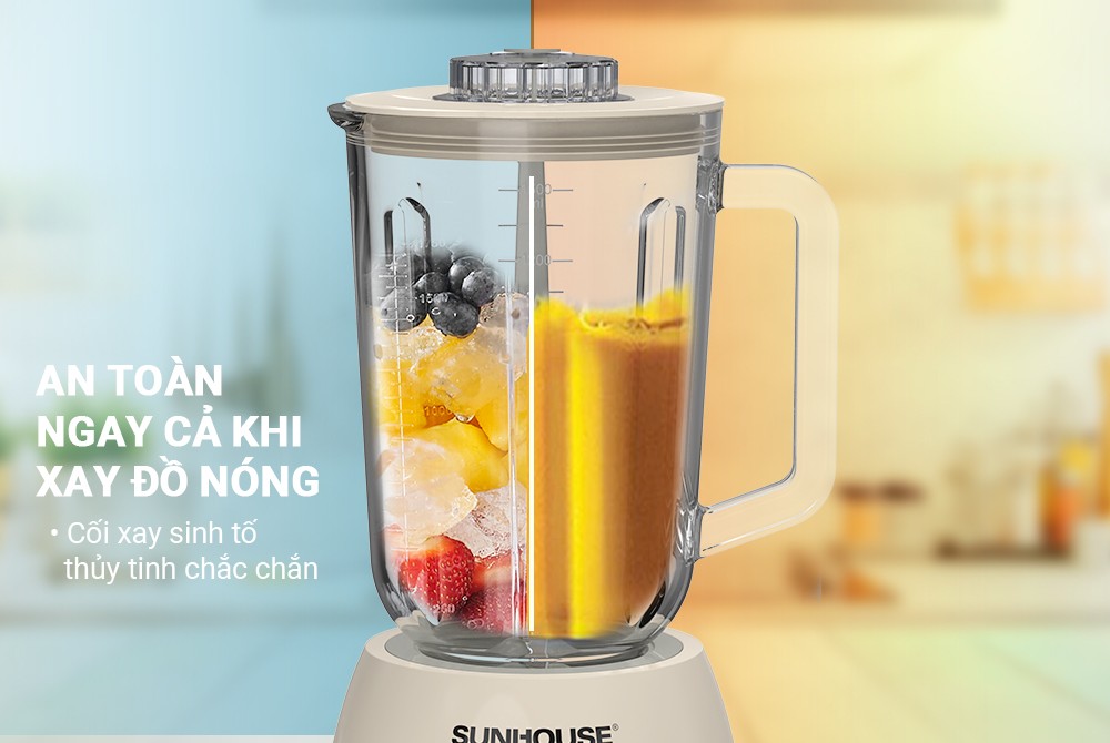 An toàn ngay cả khi xay đồ nóng Cối xay sinh tố được làm từ thủy tinh chắc chắn, chịu được nhiệt độ cao, đảm bảo an toàn tuyệt đối ngay cả khi xay đồ nóng, không lo bị nứt vỡ.