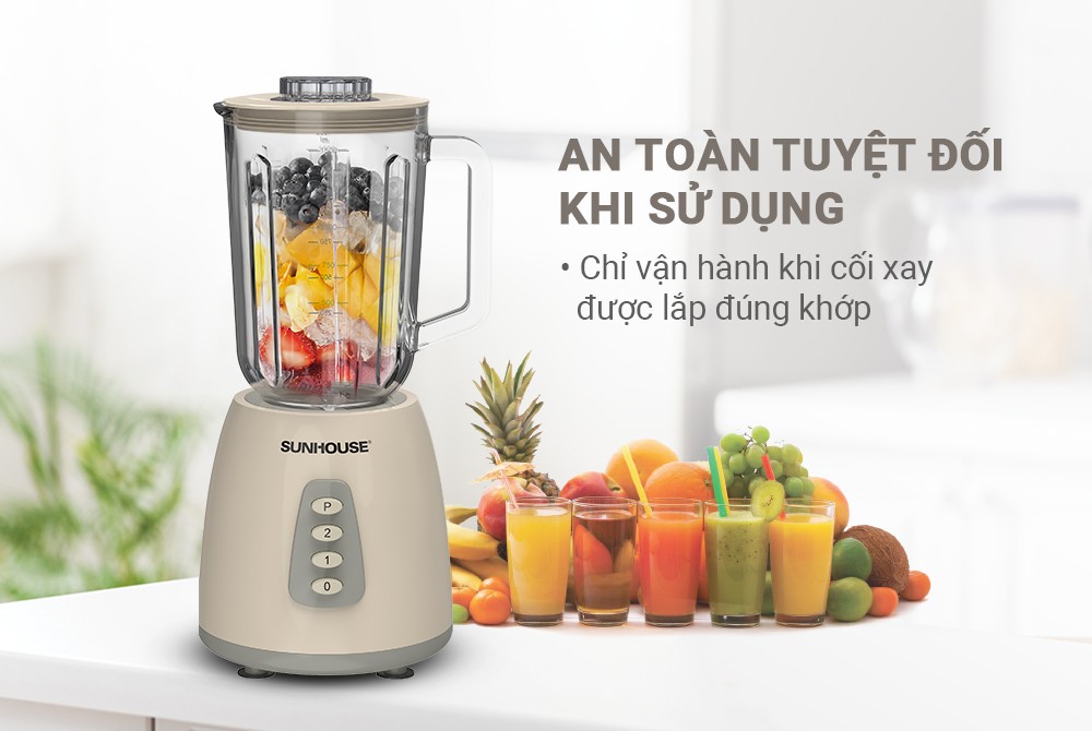 An toàn tuyệt đối khi sử dụng Máy xay sinh tố đa năng Sunhouse SHD5331 chỉ vận hành khi cối xay được lắp đúng khớp, đảm bảo an toàn tuyệt đối cho người sử dụng, đặc biệt là khi có trẻ nhỏ trong gia đình.